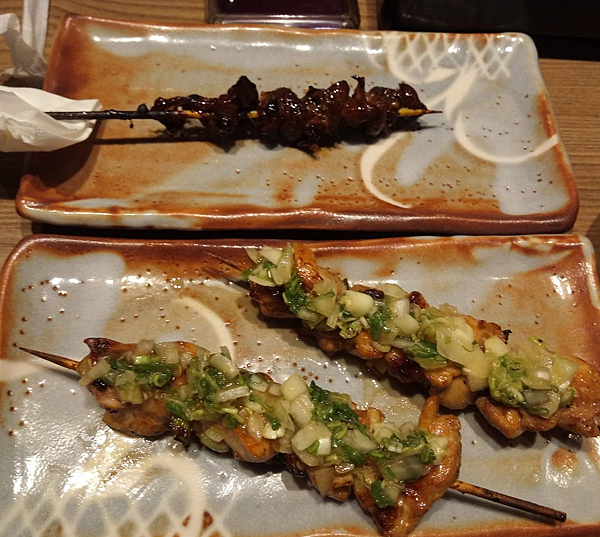 雞肉串燒三種口味,三種吃完後最喜歡自然風味...覺得最對味。鰻魚肝很特別~